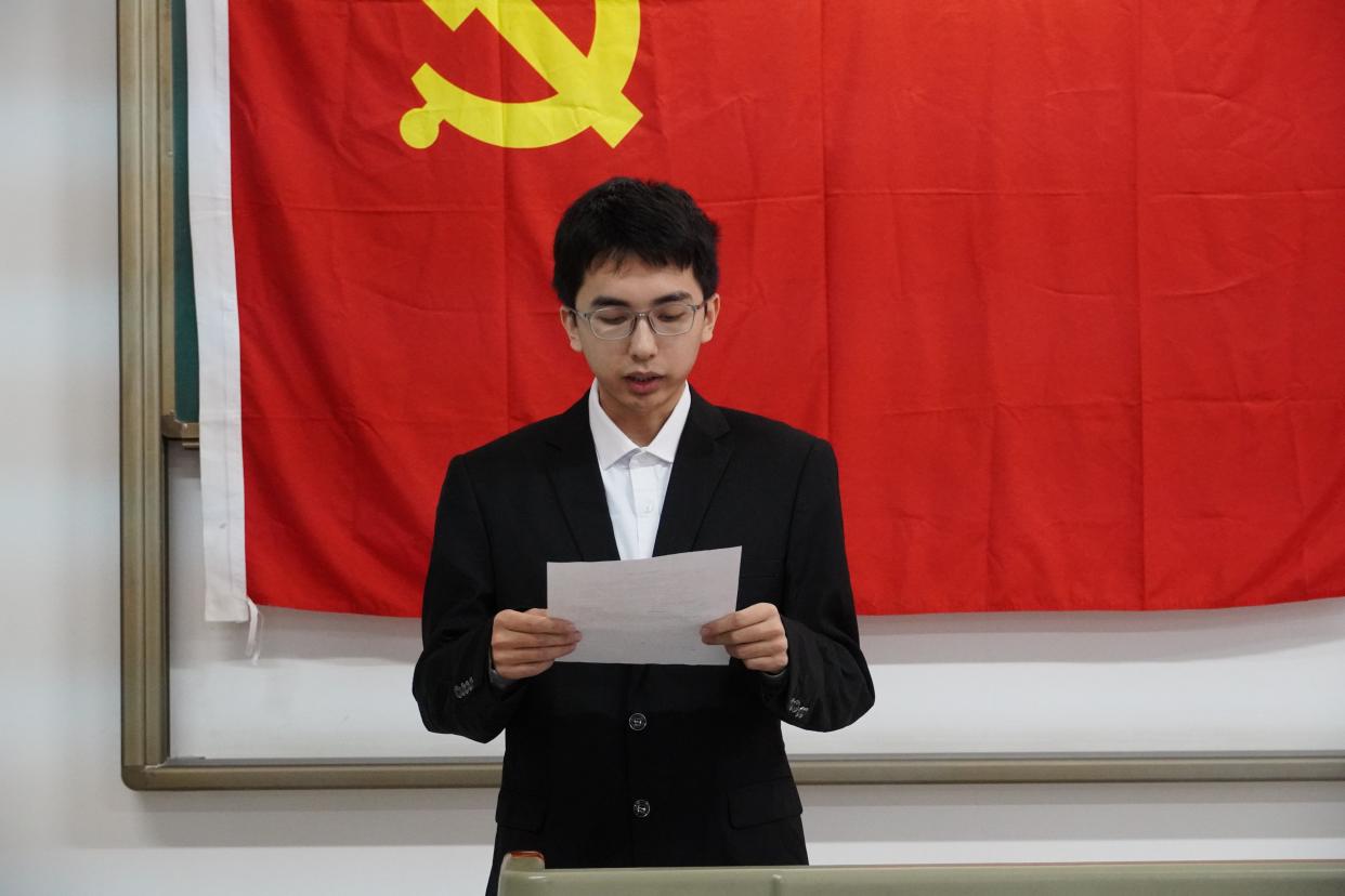 学院党委秘书翁琳源宣读学习纪律规定。学员代表陈伯钧发言,表示将严格按照共产党员标准要求自己,争取早日成为一名正式党员。