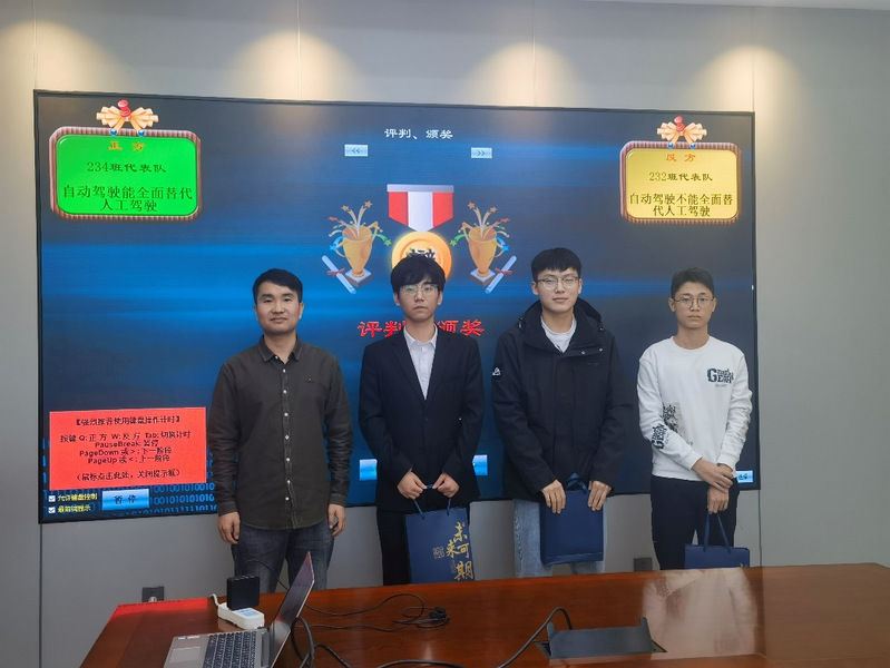 10月21日下午,麻将胡了官网 2023级研究生“新生杯”专业辩论赛决赛在麻将胡了官网 219会议室顺利举办。出席本次比赛的评委有麻将胡了官网 团委副书记、研究生辅导员张强,麻将胡了试玩 校辩论队成员崔润石,麻将胡了官网 研科协副主席杨玉琪,比赛由234班杨耀理主持。本次比赛正反双方围绕“自动驾驶能否全面替代人工驾驶”这一辩题展开激烈辩论。正方(234班代表队)所持观点是自动驾驶能全面替代人工驾驶,反方(232班代表队)所持观点是自动驾驶不能全面替代人工驾驶。