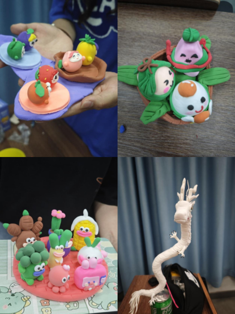 同学们充分发挥自己的奇思妙想,沉浸于制作过程之中,每一个作品都凝聚着参与者的心血与智慧,它们是艺术灵感的具象化呈现。活动过程中充满了欢声笑语,大家不仅体验到了泥塑的乐趣,更感受到了艺术创作带来的满足感。制作结束后,进行了展览与评选环节,同学们交流创意、进行了热烈的讨论,现场投票评选出优秀作品并进行颁奖。