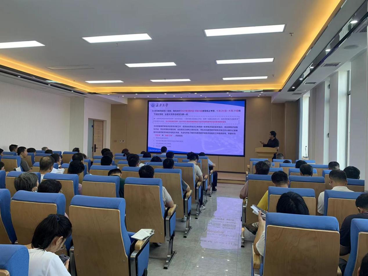 9月9日,麻将胡了官网 召开全体教职工大会,安排部署迎接本科教育教学审核评估专家考察工作。学院领导班子成员、各系室主任、院级教学督导、科级干部参加会议,副院长陈轶嵩主持大会。