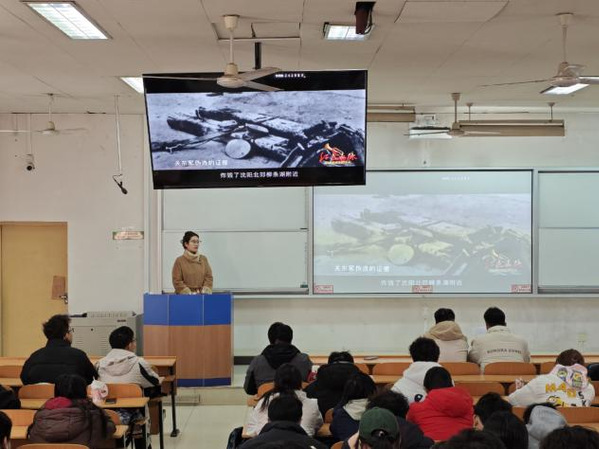 赵辰睿以“弘扬抗战精神,奋进民族复兴伟业”为题,系统回顾了从局部抗战到全面反攻的14年艰苦卓绝历程,生动讲述了正面战场与敌后战场协同配合、共御外侮的历史画卷。课堂上,一张张黑白照片将同学们带回烽火岁月,一幕幕英勇事迹铺展出浸染先烈热血的红色记忆。赵老师强调,要深刻体会视死如归、宁死不屈的民族气节,不畏强暴、血战到底的英雄气概,以及百折不挠、坚忍不拔的必胜信念,将其内化为新时代青年的精神底色。