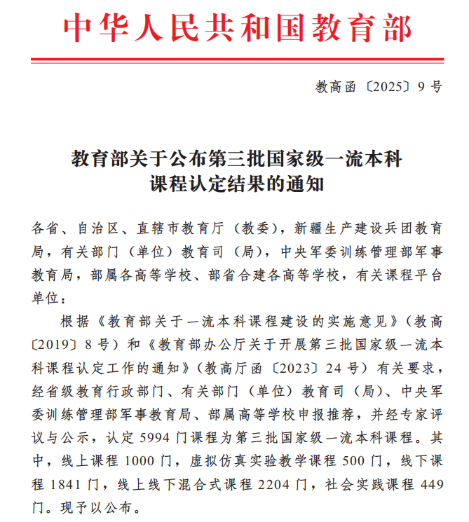 近日,教育部发布《关于公布第三批国家级一流本科课程认定结果的通知》(教高函〔2025〕9号),麻将胡了官网 《电动汽车动力电池性能测试与匹配设计虚拟仿真实验》、《汽车运用工程》2门课程成功获批国家级一流本科课程,实现学院国家级课程建设的重要突破。