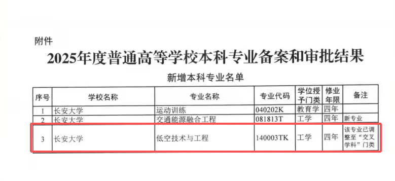 低空经济是国家战略性新兴产业,涵盖低空飞行器、智慧低空通航、路网低空融合、低空安全管控等多个核心赛道,是未来综合交通体系建设的关键增长极。本次获批的低空技术与工程专业(专业代码 140003TK),以道路交通运输、智能网联汽车、电动汽车为特色,将研究方向从二维地面交通拓展至三维空域。低空载具涉及的能源动力系统优化、轻量化材料应用等技术研发,与学校现有新能源汽车技术体系形成技术协同;低空交通运输则与交通运输、物流工程与管理、载运工具运用工程等学科产生深度耦合。